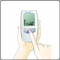 - Ambil sampel darah dan dekatkan strip sesuai arah panah.