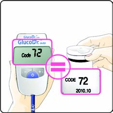 - Periksalah kode pada alat dengan kode pada strip harus sama.