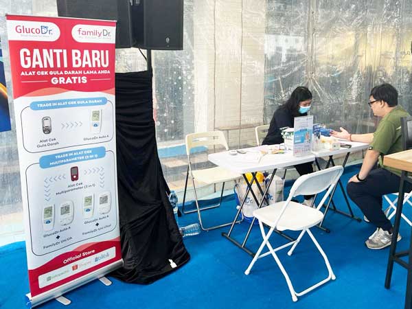 PT Medisindo Bahana selain melakukan tes kesehatan gratis dikegiatan tersebut juga mengadakan program promo dengan kondisi harga khusus dan program trade in alat GlucoDr.™ dan familyDr.™ selama kegiatan berlangsung.