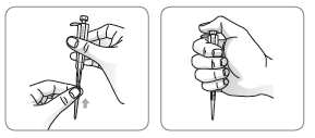 - Masukkan ujung pipet ke dalam pipet seperti pada gambar. Tekan tombol yang terdapat pada bagian atas pipet lalu tahan.