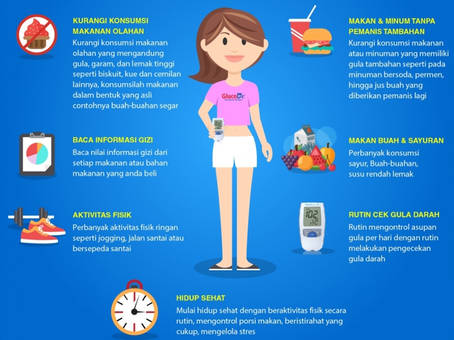 - Mulai hidup sehat dengan beraktivitas fisik secara rutin, mengontrol porsi makan, beristirahat yang cukup, mengelola stres